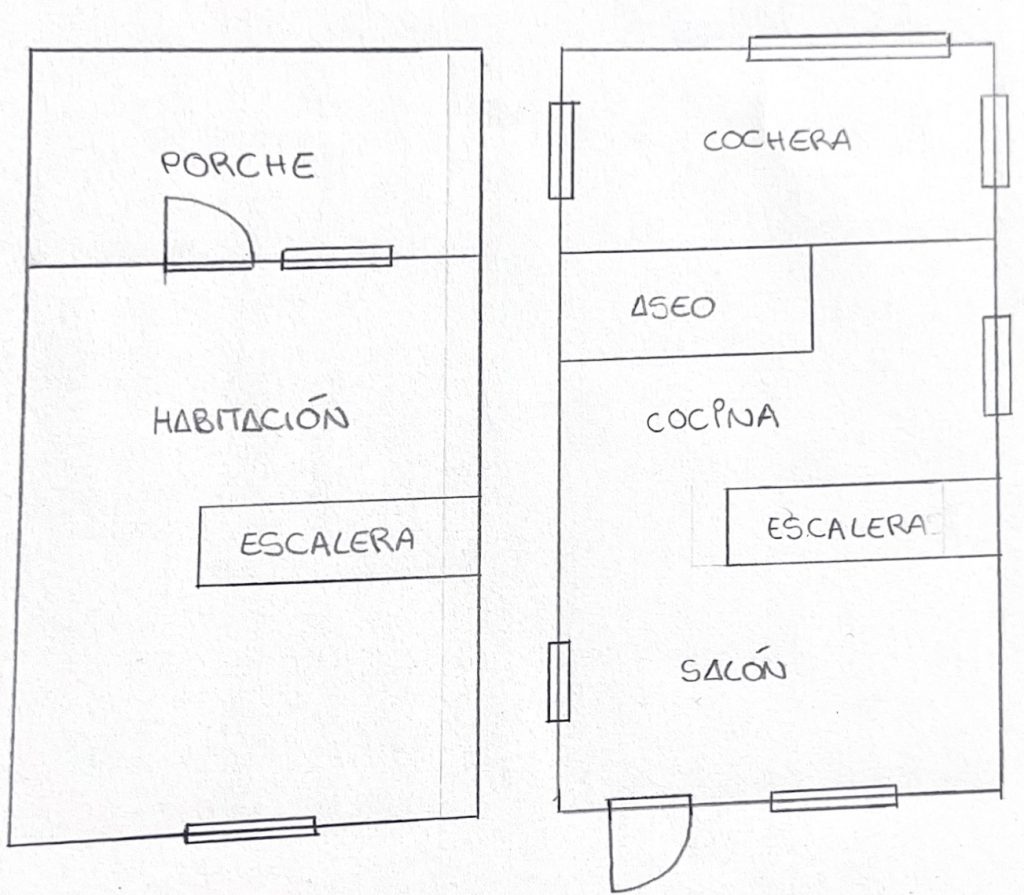 La barraca cuenta con 3 accesos exteriores: la puerta principal que se accede por el porche de la planta baja (90cm x 210cm), la puerta trasera que es la de la cochera (230cm x 235cm) y la puerta que accede al porche de la segunda planta en la parte trasera.